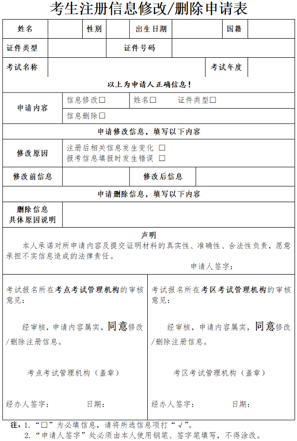 考生注册信息修改/删除申请表在哪里查看考生注册信息修改/删除申请表简介可在相关考试官方网站的下载中心或考生服务区域查看。此表用于考生提交信息修改或删除的申请,具体流程和要求需按照官方指引操作。... 2025-08-11 - [阅读全文]